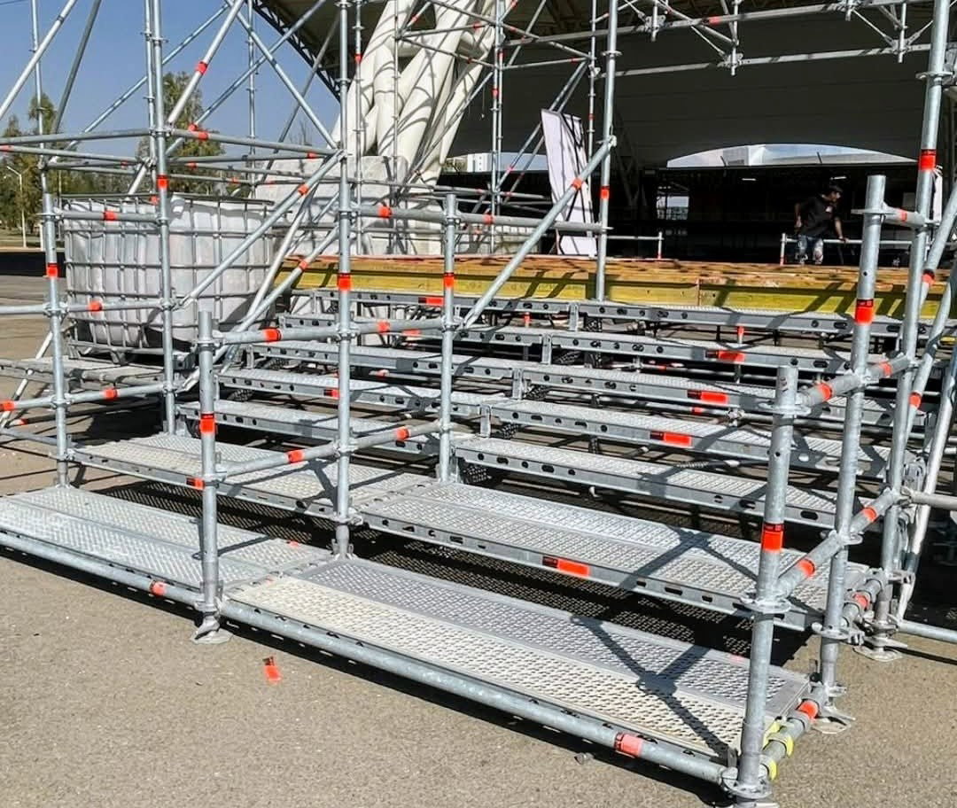 Certificación Real: Usamos el sistema Layher Allround, que es el más seguro del mundo. Esto significa que la estructura no vibrará, no cederá y cumplirá con todas las normas municipales y de Defensa Civil.